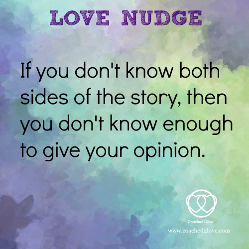 #LoveNudge: http://www.coached2love.com. If you don’t know both sides of the story, then you don’t know enough to give your #opinion.
