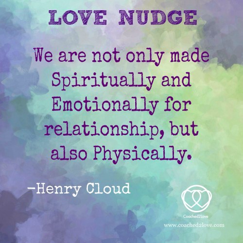 We are not only made Spiritually and Emotionally for relationship, but also Physically. -Henry Cloud #LoveNudge http://www.Coached2Love.com
