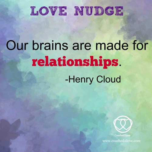 Our brains are made for relationships. #HenryCloud #LoveNudge http://www.coached2love.com
