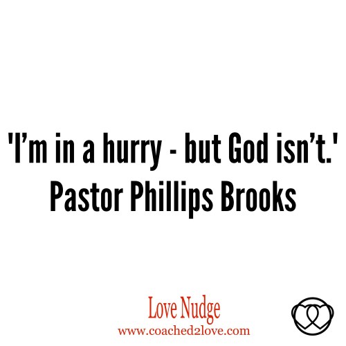 Everything seems pressing. We must have success now. We must be happy right now. We must feel loved and appreciated from moment we hear hello.