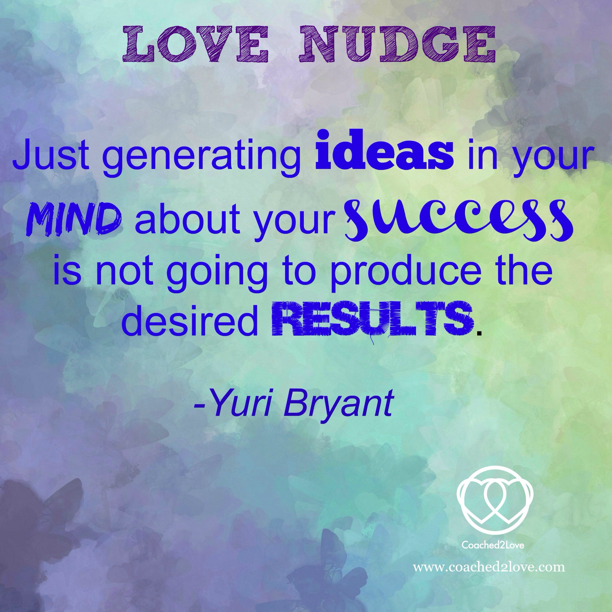 #LoveNudge: http://www.Coached2Love.com “Just generating ideas in your mind about your success is not going to produce the desired results.” -Yuri Bryant
