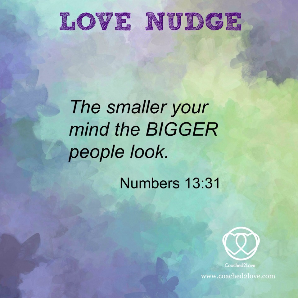 The smaller your mind (and faith) the bigger people look. #LoveNudge http://www.Coached2Love.com