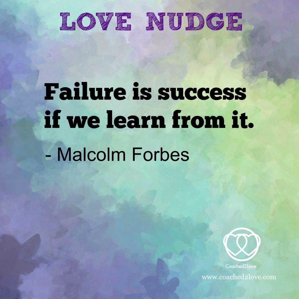 Failure is success if we learn from it. #MalcolmForbes #LoveNudge http://www.Coached2Love.com