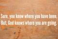 Sure, you know where you have been. But, God knows where you are going. Too often we find ourselves in despair over where we are in life. In truth, we lose momentum for our future when we settled for our current circumstances. Only God knows what exists beyond our present situation, health condition, or relationships, so why sabotage your future with a negative outlook? Raise your head and accept that God loves you enough, and you should love yourself enough to fight through your feelings of doubt. Tomorrow is an amazingly unknown opportunity. Embrace this unknown with optimism.