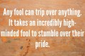 However, pride is a slippery thin line that entraps many foolish hearts. The starke difference can be measured simply by the good a person does or the harm caused to themselves or others. For any (ordinary) fool can trip over anything. It takes an incredibly high-minded fool to stumble over their pride.