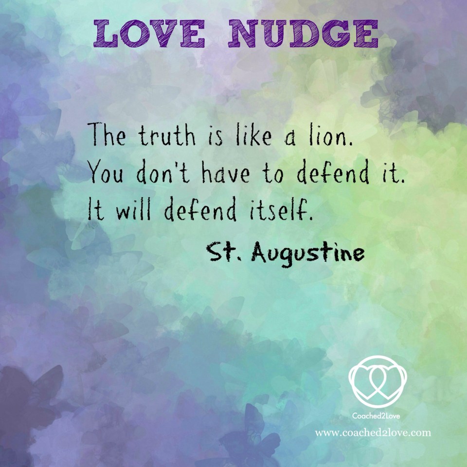 The truth is like a lion. You don’t have to defend it. It will defend itself. #StAugustine #LoveNudge http://www.Coached2Love.com