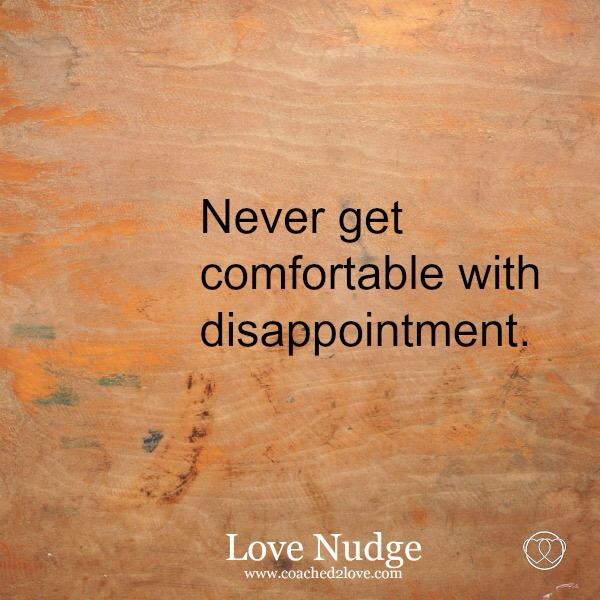 Never get comfortable with disappointment. #lovenudge http://www.Coached2Love.com