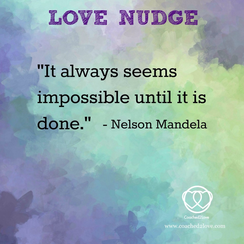 It always seems impossible until it is done. #NelsonMandela #LoveNudge http://www.Coached2Love.com