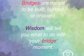 Bridges are meant to be built, burned, or crossed. Wisdom will tell you what to do with your bridge moments.